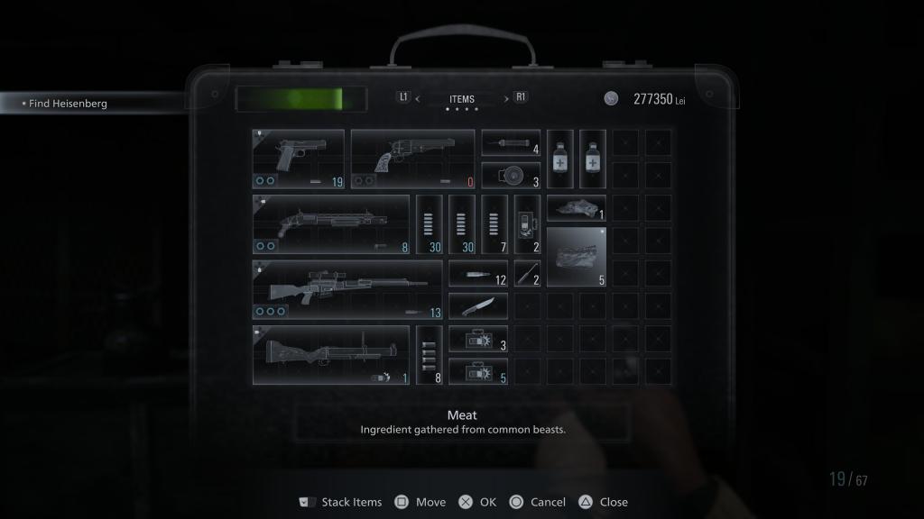 There’s just something incredibly satisfying about playing a serene mix of Marie Kondo and Tetris with your resources to get them to fit in your briefcase. Even though my treasure hunting ways meant I was always able to afford the size upgrades and thus was never too crunched for space, I still loved just taking a moment to organize my belongings like getting all my weapons and ammo in one area. My only complaint is that they updated the fish in this game to just exist as meat, so you didn’t have the fun of having a suitcase full of giant fish like in RE4.