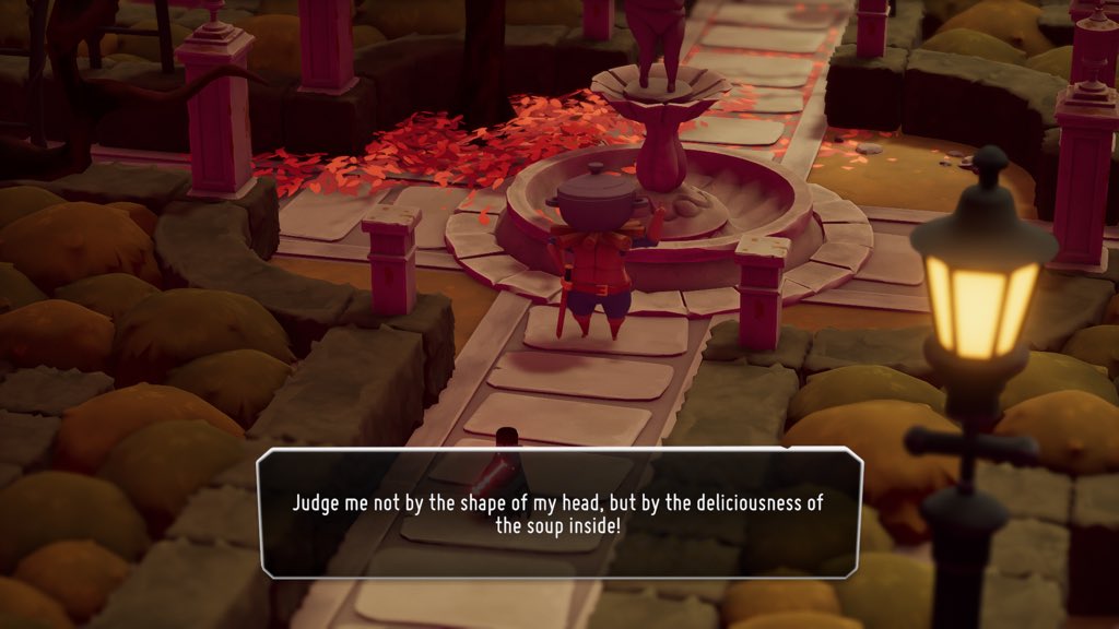 You’re immediately drawn into this painstakingly handcrafted world. The graphics are absolutely gorgeous yet simplistic with neat little touches like feathers floating off of your crow character whenever you roll or signs that read with half of the text cut off when you take your sword to them. There’s so much life (and death) in every realm that you can’t wait to see what clever flourishes the two devs (yep a two man team did this) have waiting for you. This is wrapped inside a beautiful balance of absurdist humor, like a sea captain who is actually controlled by a squid or a character with a pot of soup for a head who is named “Pothead”, and the dourness and solemnity that goes along with the death following a reaper. But that death is all about bringing on new life, so a sense of hope exists with the thrill of adventure. Wrap this all up in one of the best scores I’ve heard in a while, and it creates a world you’ll not want to put down until it’s finished.