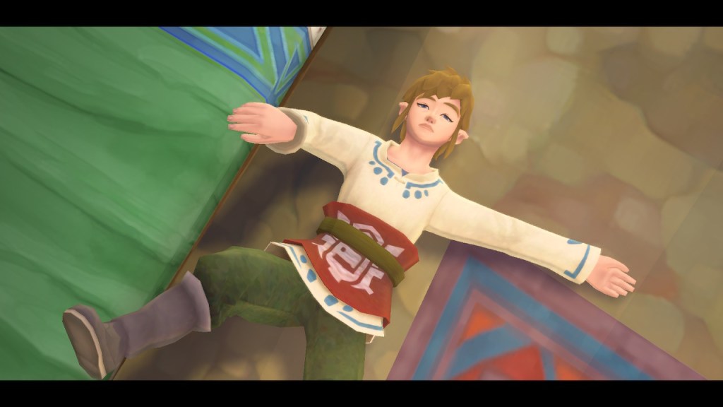I either played Skyward Sword in handheld mode laying in bed fighting off sleep or docked on my nice monitor in my tiny little office. As such, I never got to try out the motion controls for proper comparison. I’ll never know the thrill of having a joycon fly off and crash into something. I’ll also never experience the sensation of power that accompanies raising your controller up to absorb the power of the Goddess for a skyward strike because taking the two minutes to hook it up to my actual TV just sounds like way too much work