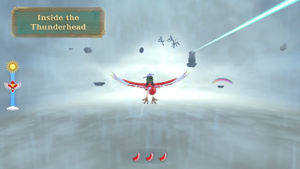 Scattered throughout the land and clouds are mysterious cubes that you activate with a skyward strike from your heavenly blade. Once activated, this opens up a chest somewhere in the world leading to a fun little interlude in between missions where you go exploring to reap the rewards from the 3 or so cubes you had just uncovered.