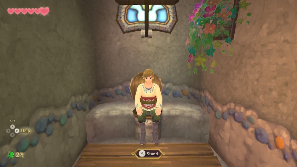 Need to heal? Just find any of the conveniently placed stools, benches, or toilets and have a seat. I cracked up laughing every time I saw Link take a brief break from trying to save the world to have a quick little rest.
