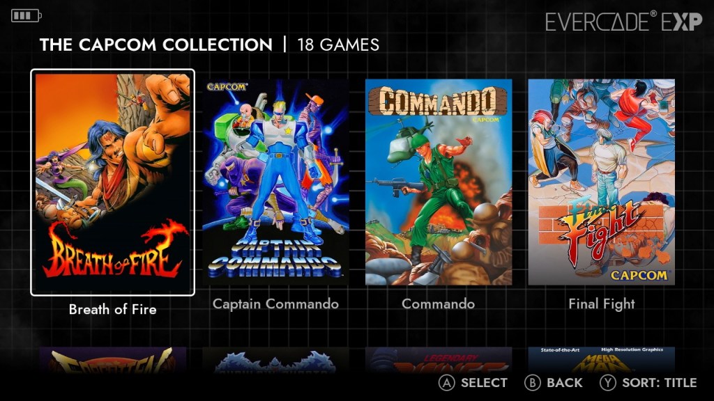 The EXP comes with 2 collections to get you started – the IREM Arcade Collection 1 most notable for the stellar R-Type series and the Capcom Collection (which is sadly not on a cartridge due to licensing restrictions) that features everything from Commando to Mega Man X to Street Fighter, instantly adding a ton of variety to your library.