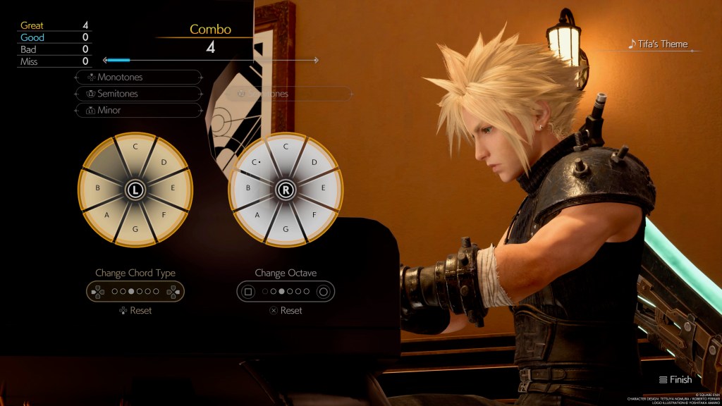 Now here’s an entry that could land in any of the sections of this review. Perhaps the most elaborate and difficult of the mini-games is playing the piano. It actually is a blast to be able to sit down and play this joystick rhythm game with some of our favorite tunes, but the difficulty is far too steep making it almost impossible to get the “A” rankings required to get rewards and advance. I gather that it is kind of a mess for people who know the piano. Still, there are some truly incredible moments like playing Aerith’s Theme in Nibelheim that stand out. My feelings on this have alternated wildly and have currently swung over to loving it after finally achieving those difficult “A” rankings and the related trophy while revisiting it to get a picture from this post.