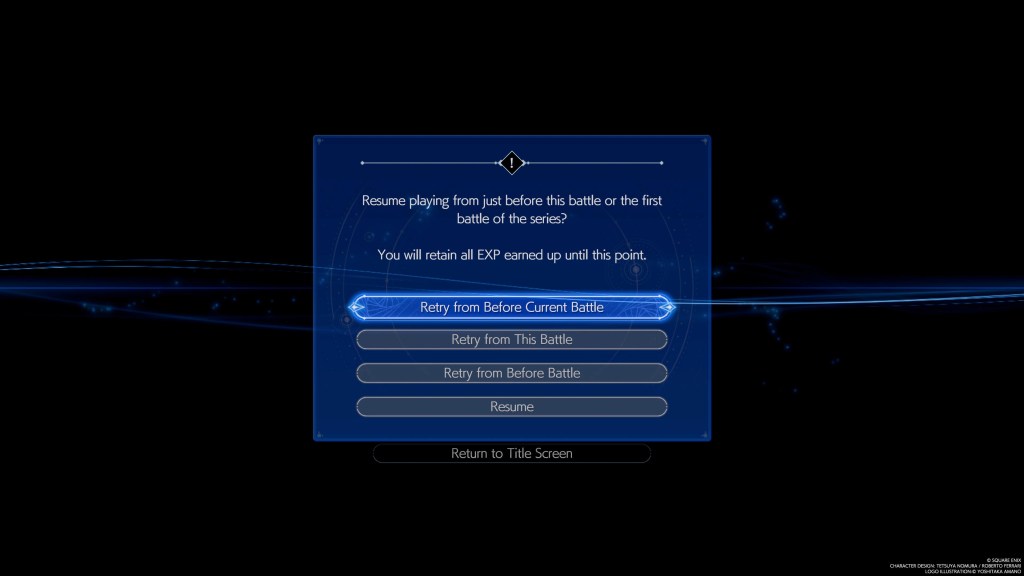 You should really try not to lose in the midst of a series of connected battles in this game because the riddles posed to you as to where you would like to restart from may cause your brain to melt. I must admit that after a whiskey in the midst of the final battle, I may have selected the wrong option and been forced to redo 4 earlier segments. At least the combat and bosses are so fun that i still ended up enjoying myself.