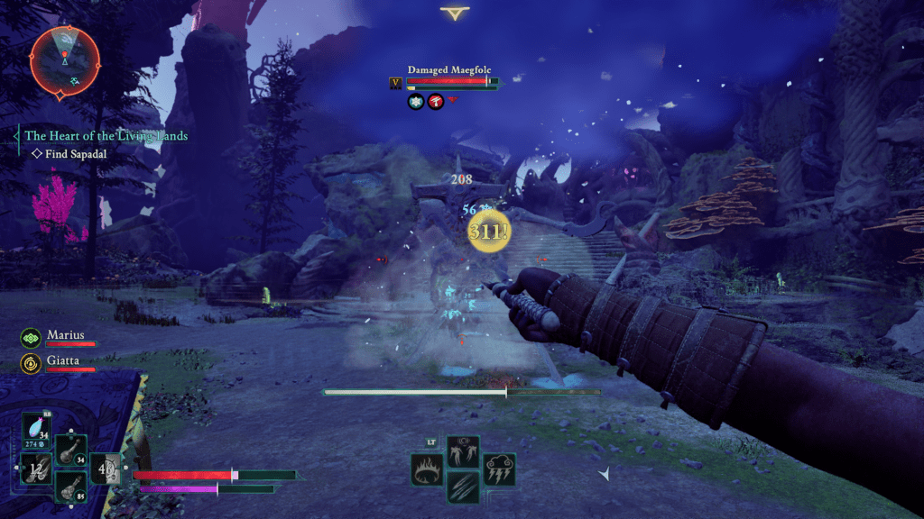 Avowed opts for a beautiful hand drawn looking map and relatively sparse mini-map for your Hud. The mini-map is extremely helpful for finding resources and bodies that need pillaging but oddly does not highlight chests you have come across or any sort of actual geographical information. The map itself really misses out by lacking the ability to add points of interest for custom navigation. With all the verticality present in exploration, this can make it difficult sometimes to realize what you have and have not explored or how to get to where you want to go. It never gets overly burdensome, but it does feel like a missed opportunity.