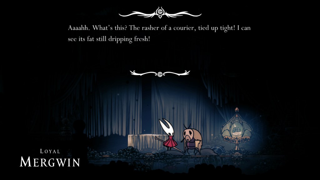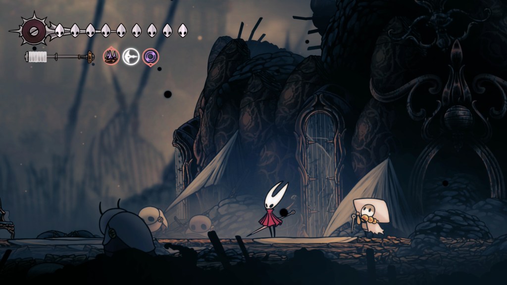 Silksong‘s map maker has a lot more to provide than just details about the current area. They also are a formidable warrior who will occasional assist you in battle and whose own personal journey to find their master provides some of the best narrative moments in the game. While her singing may not be getting quite the love and attention that Sherma’s is, it is thoroughly haunting and beautiful and provides a real sense of achievement anytime you hear it and know you’re about to unlock a map. If any character in this game is deserving of a starring role in a sequel 7 years down the line, it’s Shakra.