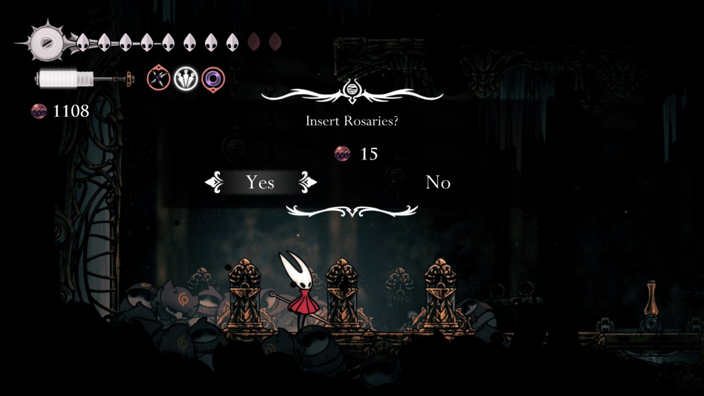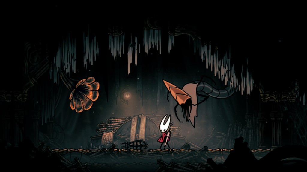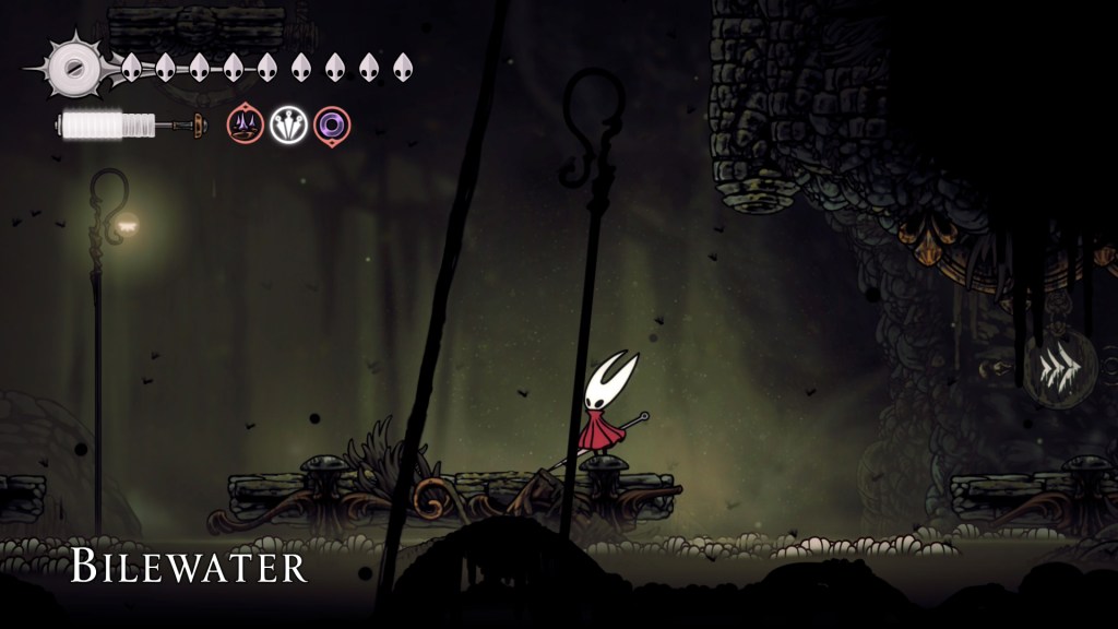 After one particularly grueling stretch, I finally encountered a bench and said out loud “oh thank, Jesus” only to immediately be hit by a trap once I sat down. In less adept hands, that would have come across as cruel, but here it feels far more like a “ha ha” moment being thrown at you by the devs. There are plenty of other instances of your seeming safety being quickly compromised, but they never made me angry. Rather I would just think “you got me there, Team Cherry”.
