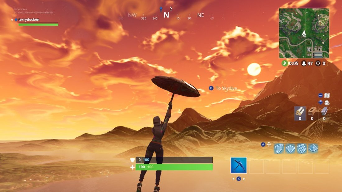 A few weeks ago I finally gave in and tried out Fortnite. Unfortunately for me, it turns out the game is as highly addictive as I had heard, and my initial plan to check in every now and then has led to about 30 hours of battle royales (and 5 very awesome victory royales) over the past 3 weeks. One of my favorite places on the map has been the super-villain lair/missile silo located inside of a mountain to the northeast of Snobby Shores. There always seems to be great loot there and there aren't often many others landing there, so it's a solid starting point. Starting yesterday, all TVs in the game began a countdown to 1:30 pm EST when the missiles would launch, so I decided to go watch the fireworks happen. Here's what I saw.